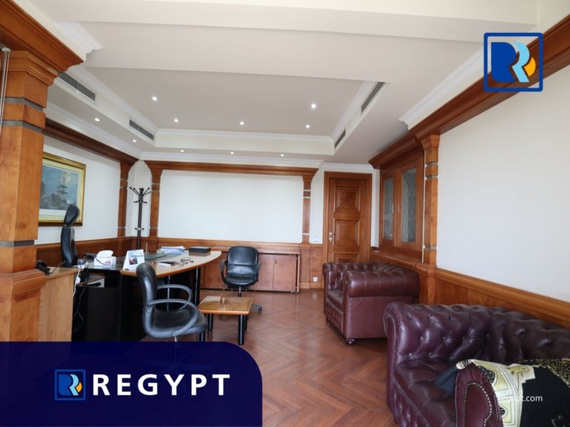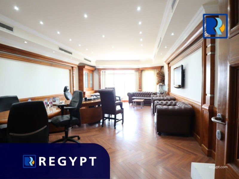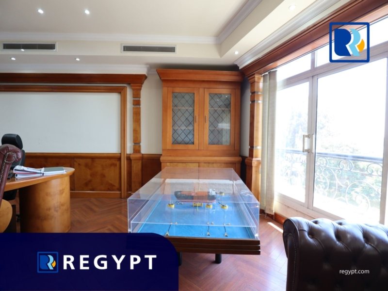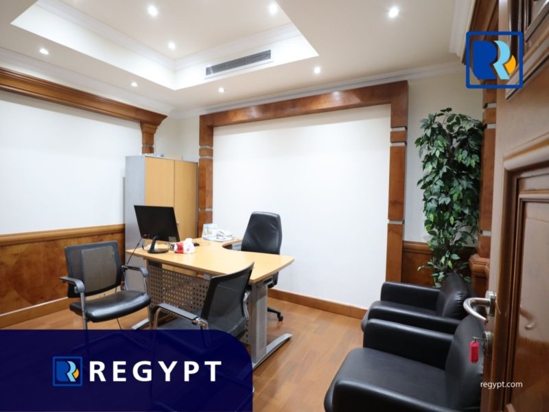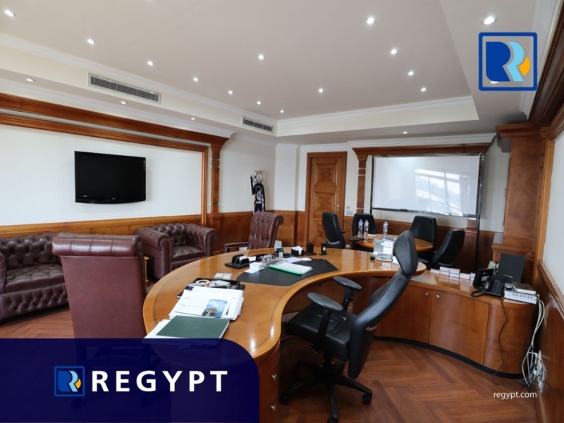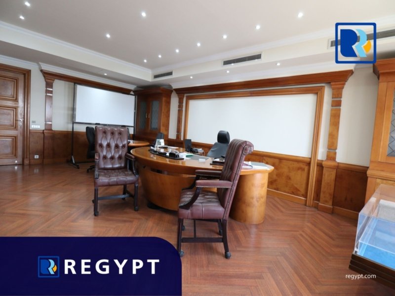 Discover this prestigious office space located in a prime area of Maadi, offering 1000 sqm of stylishly designed workspace. It includes 9 private rooms, an open space, a large reception area, 7 modern bathrooms, and a fully equipped kitchen. Dedicated parking. Ideal for multinational companies, startups, or embassies looking for a professional setting.