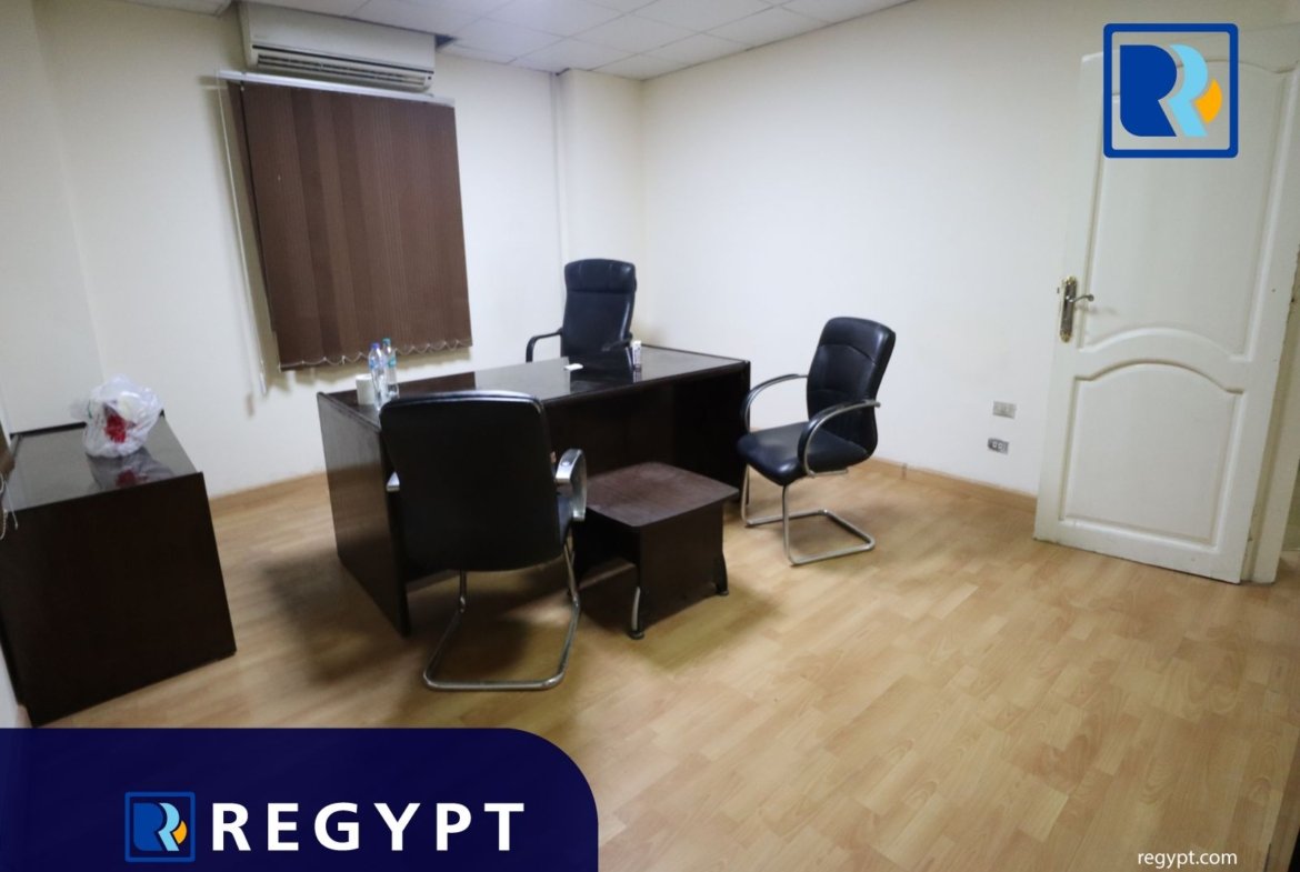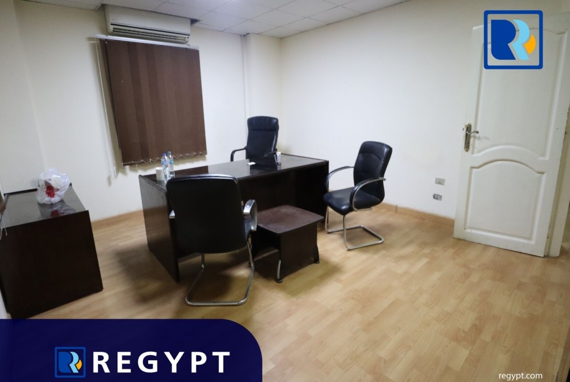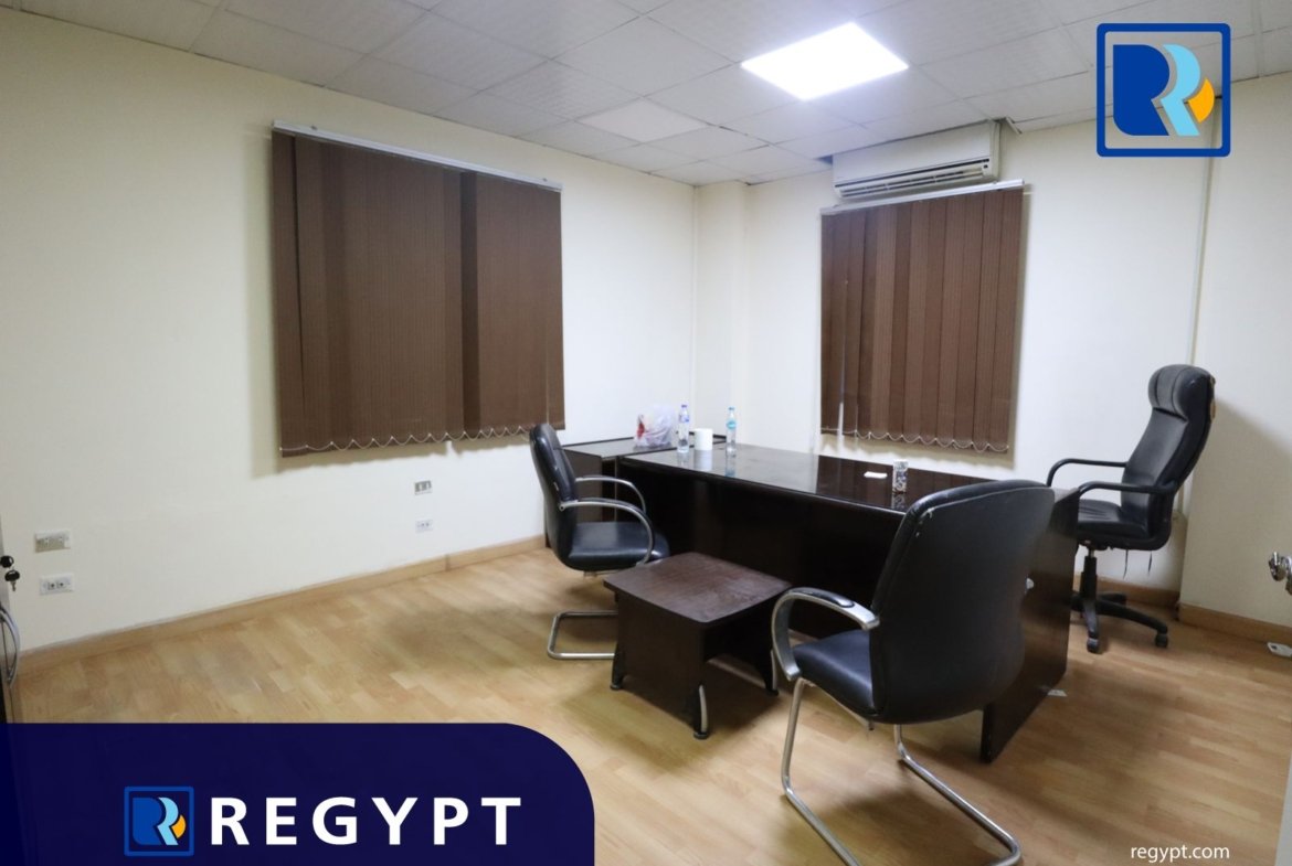 Discover this prestigious office space in a prime area of Maadi, offering 180 sqm of stylishly designed workspace. It includes 3 private rooms, open spaces, a conference room, a reception hall, 2 modern bathrooms, and a kitchen. Dedicated parking for. Ideal for multinational companies, startups, or embassies looking for a professional setting.