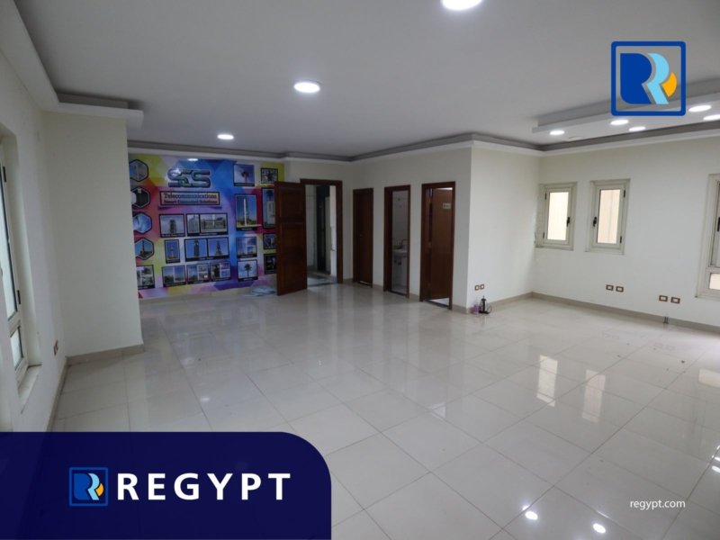 Discover this prestigious office space located in a prime area of New Maadi, offering 400 sqm of stylishly designed workspace. It includes 3 rooms, an open space, a large reception area, 2 modern bathrooms, and a fully equipped kitchen. Dedicated parking. Ideal for multinational companies, startups, or embassies looking for a professional setting.