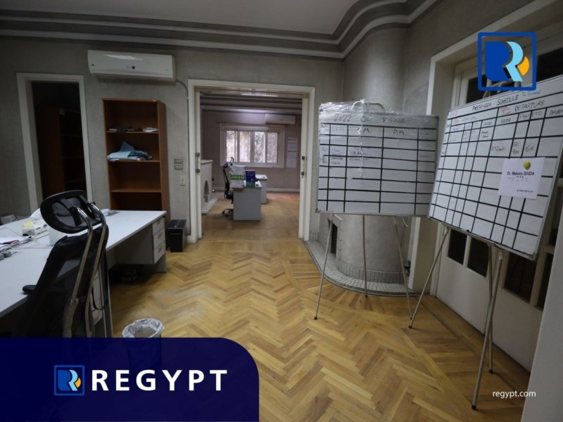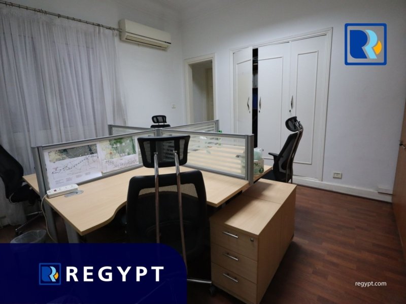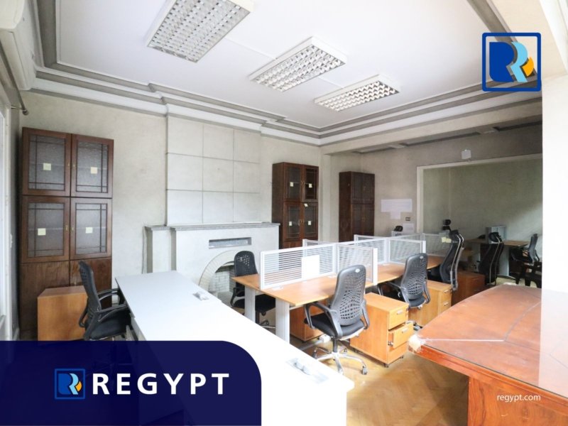 Discover this prestigious office space in a prime area of Zamalek, offering 300 sqm of stylishly designed workspace. It includes 7 private rooms, open spaces, a conference room, a reception hall, 5 modern bathrooms, and a luxury kitchen. Dedicated parking for. Ideal for multinational companies, startups, or embassies looking for a professional setting.