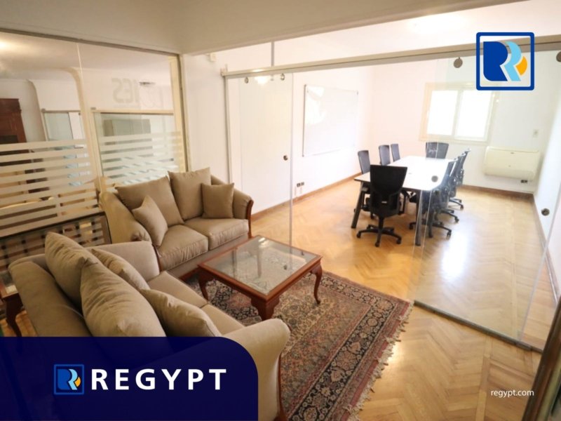 Discover this prestigious office space located in a prime area of Sarayat El Maadi, offering 240 sqm of stylishly designed workspace. It includes 4 private rooms, a large reception area, 2 modern bathrooms, and a fully equipped kitchen. Dedicated underground parking. Ideal for multinational companies, startups, or embassies looking for a professional setting.